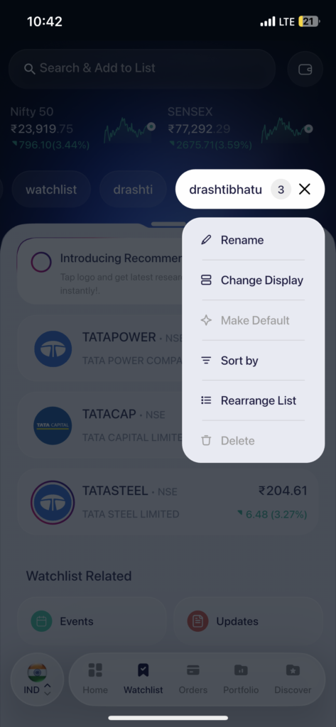 Yes, you can rename or delete any watchlist on the Samco app. Both options are available from the watchlist settings menu.