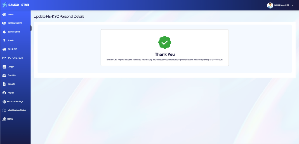 Completing Re-KYC through the Samco Star Back Office ensures your trading account remains active and compliant.Please ensure that all details provided are accurate and documents uploaded are clear to avoid delays.