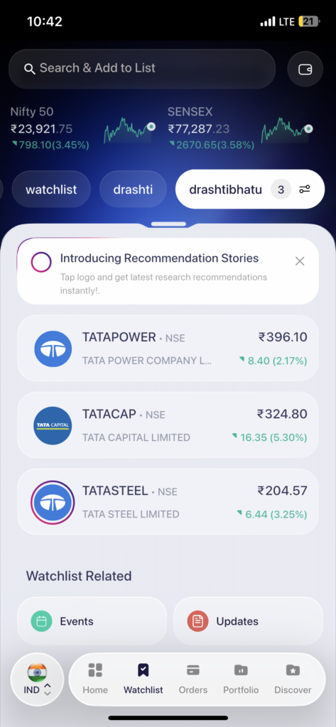 Creating a new watchlist on the Samco app takes less than a minute. You can set up multiple lists to organise your stocks however you prefer by sector, strategy, or any other grouping that works for you.