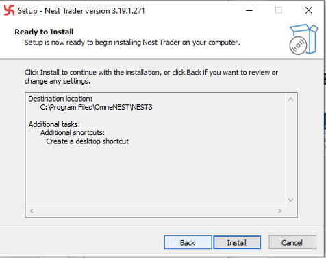 The system will begin installing the Nest Trader terminal on your computer.