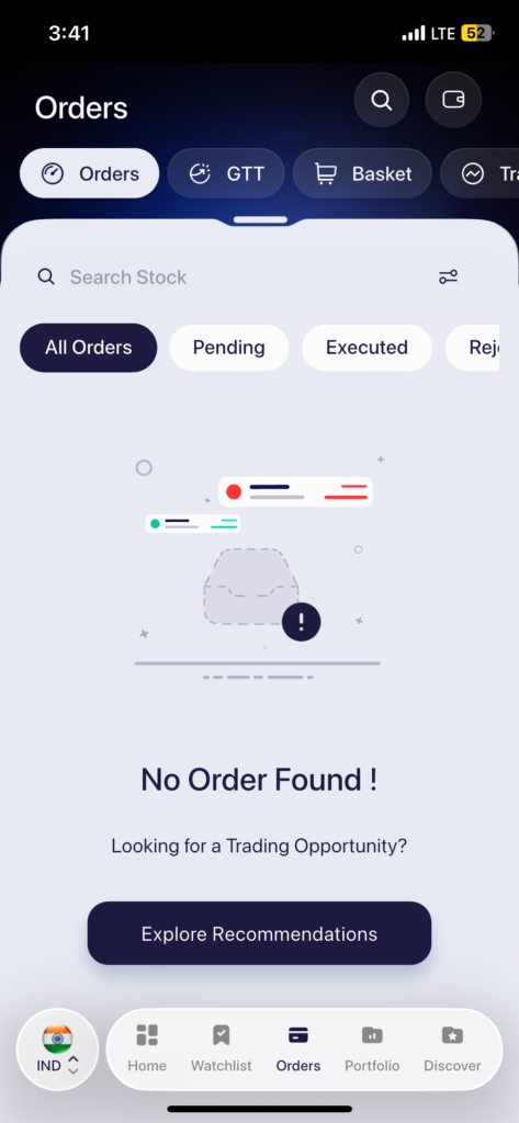 - You can also use the Search bar at the top of the Orders screen to quickly find an order for a specific stock